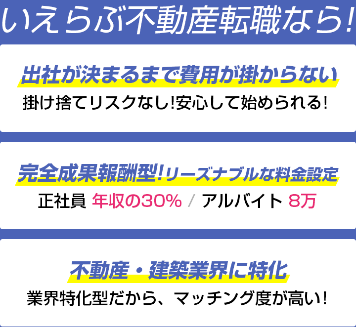 いえらぶ不動産転職は不動産業界に特化した求人サイトです。