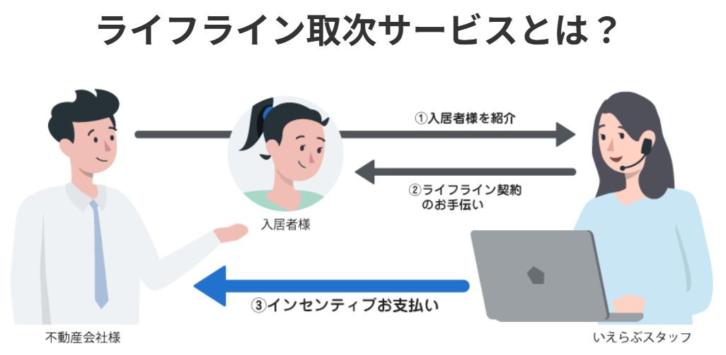 *いえらぶコミュニケーションズでは、「空室通電」や「外国語対応ライフライン取次」など、不動産アライアンス事業を中心としたサービスを提供しています