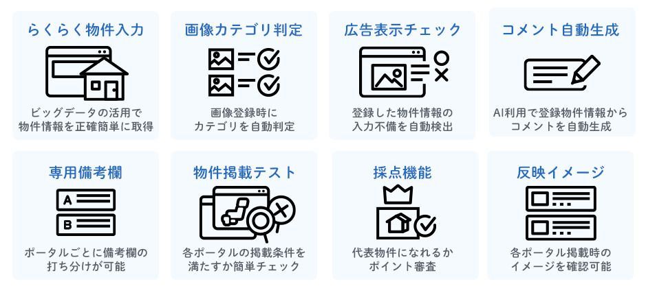 AIを利用し、登録物件情報から各ポータルサイトの仕様に合わせたコメントを自動生成可能です。