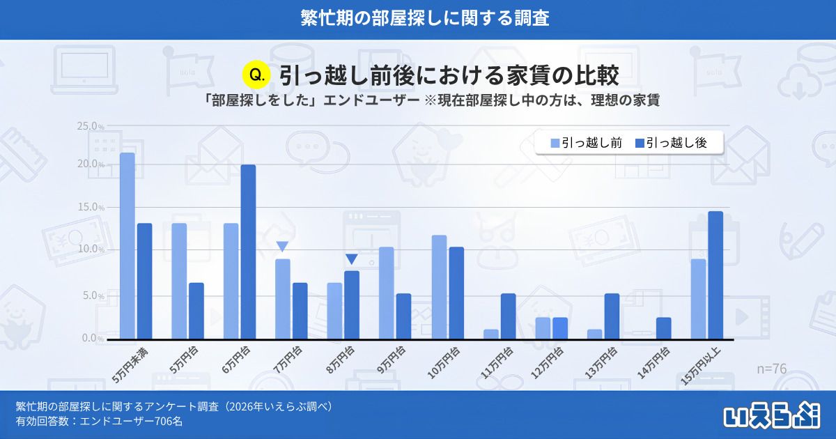 - 2.引っ越し前後の家賃中央値は約1.2万円アップ、理想と現実のギャップも
